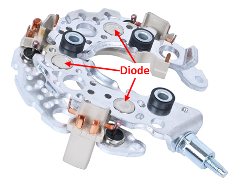 Alternator diode - Diode Trio는 알터네이터가 발전한 후에 Rotor field winding에 DC 전압을 제공한다. 알터네이터 제어용 regulator 반도체는 diode trio의 출력 전압을 이용하여 알터네이터의 속도 및 위상 전압을 감지한다.