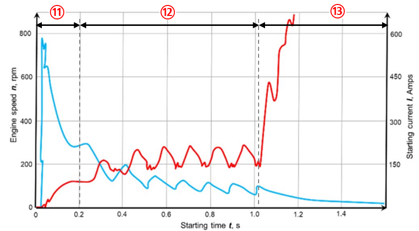 스타터 전류는 엔진 RPM에 반비례해서 동작한다.
