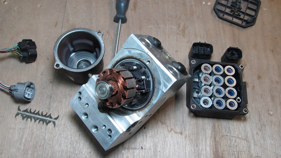 ABS 모터는 솔레노이드 밸브가 포함된 ABS 유압 장치와 함께 작동한다. ABS 제어 모듈이 휠 미끄러짐을 감지하면 ABS 모터를 작동시켜 브레이크 유체를 펌핑하여 특정 휠의 브레이크 압력을 증가시키거나 감소시킨다.