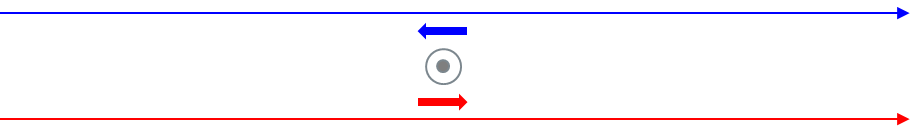 외부 노이즈(자기장)가 일반 선에 앞 방향으로 가해지면 패러데이 법칙에 의해서 아래와 같이 전류가 생긴다.