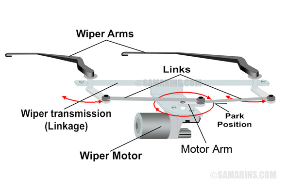 - 와이퍼 링키지 (transmission system): 모터의 회전 운동을 와이퍼 암의 oscillating movement로 전환