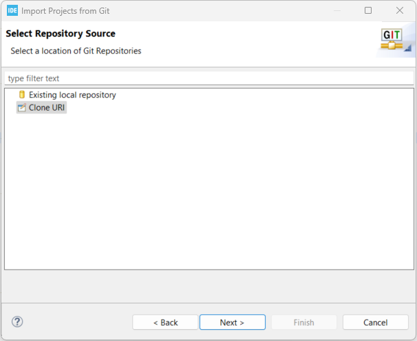 Git Repositories를 선택하면 아래와 같은 창이 생기며, Clone a Git repository를 선택