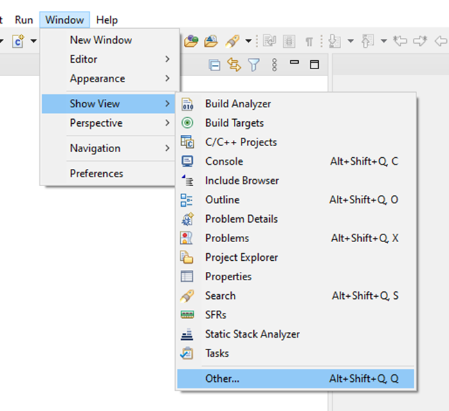 Windows menu > Show View > Other
