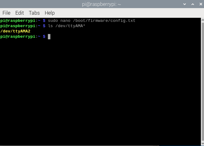 터미널에서 ls /dev/ttyAMA* 을 입력하면 /dev/ttyAMA2가 보여야 한다.