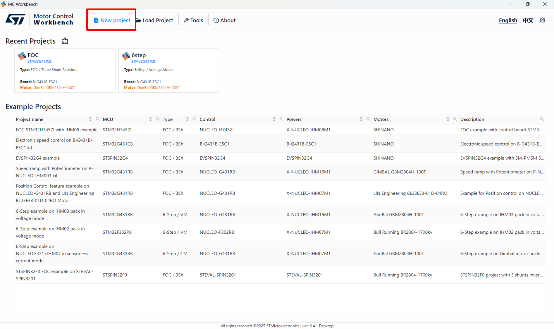 Motor Control Workbench를 실행하게 되면, 아래와 같은 화면이 나온다.