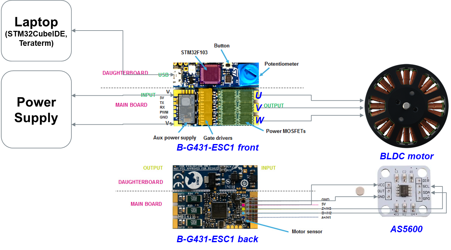 Hardware setup Figure is the hardware setup for BLDC foc control. Main components are