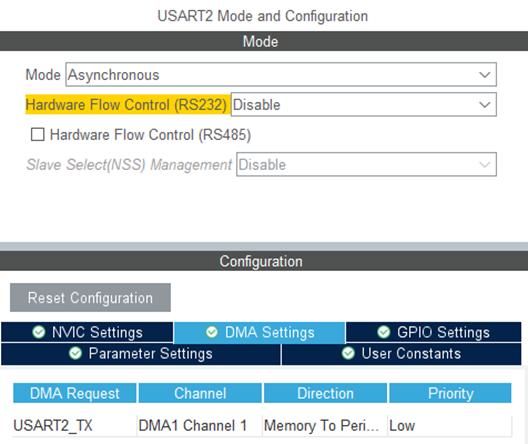 - DMA greatly reduces CPU load by eliminating the need for an interrupt on every transmitted byte.